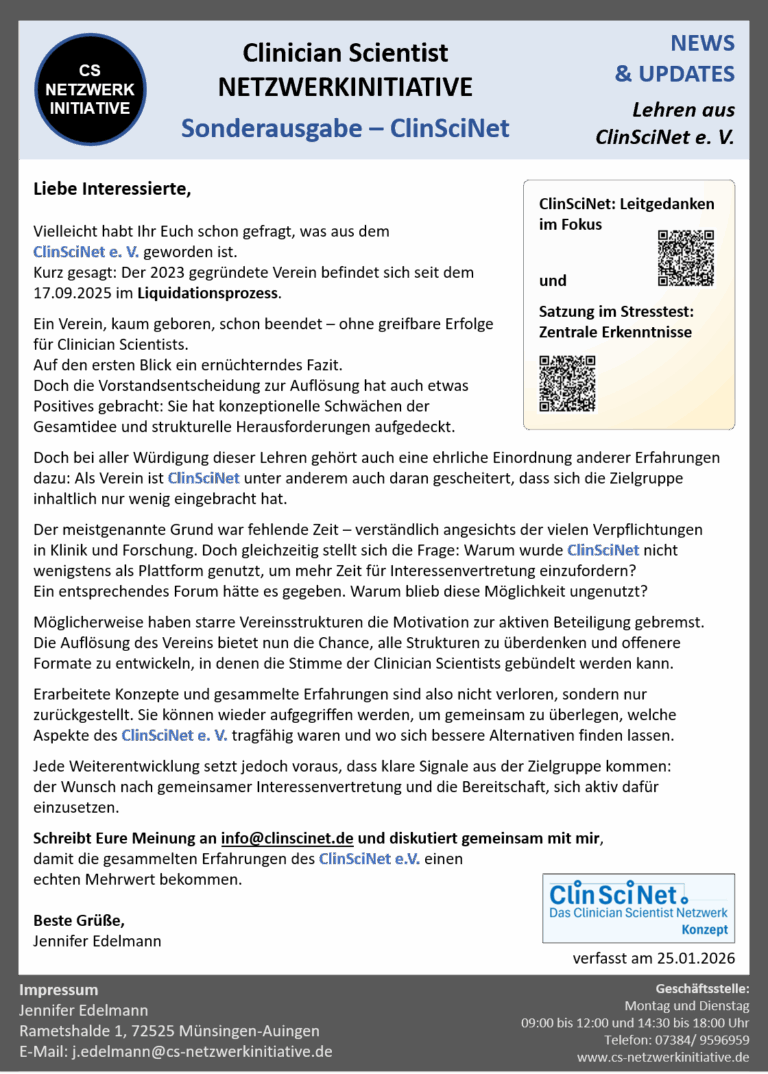 ClinSciNet – Das Clinician Scientist Netzwerk